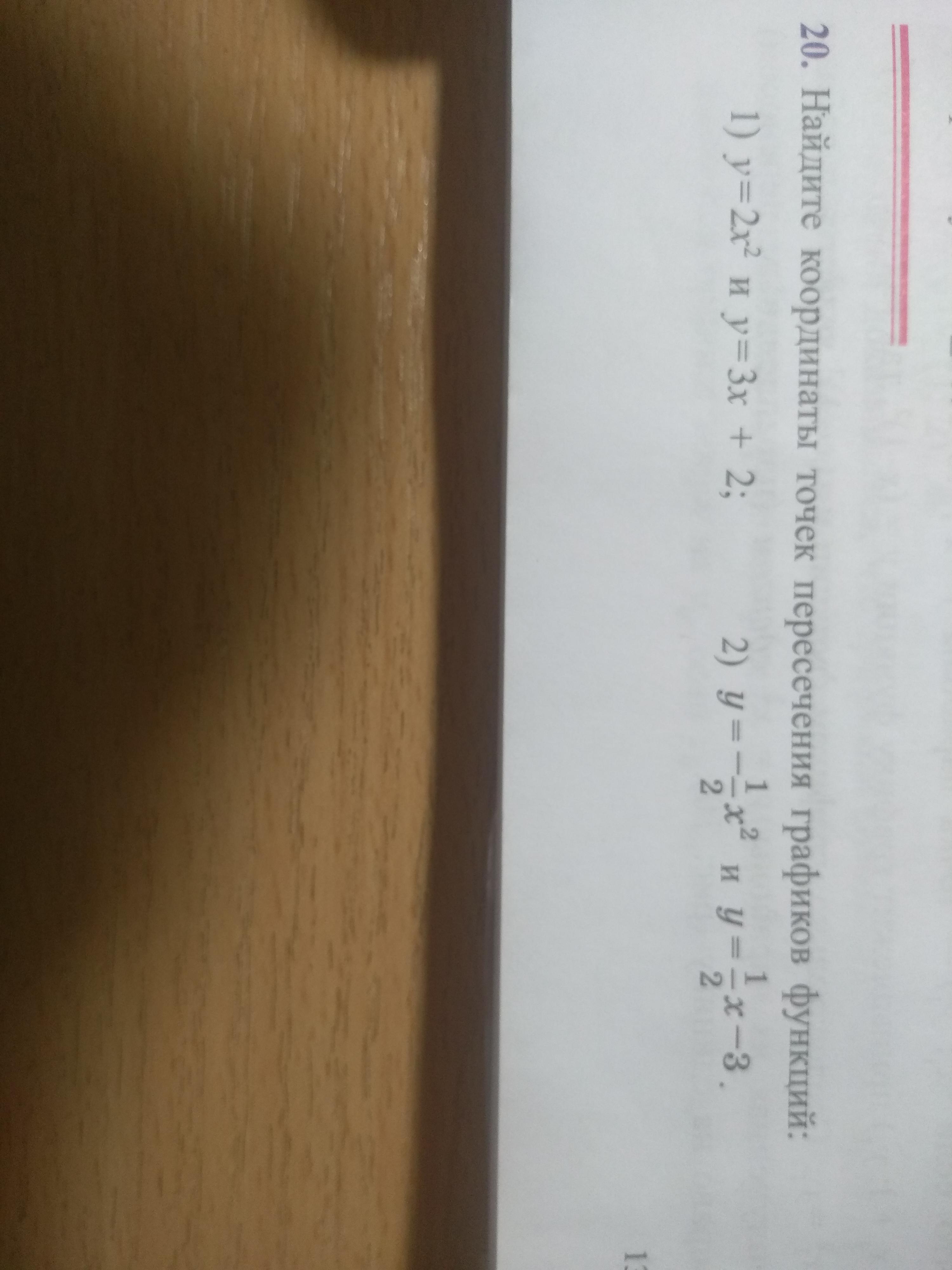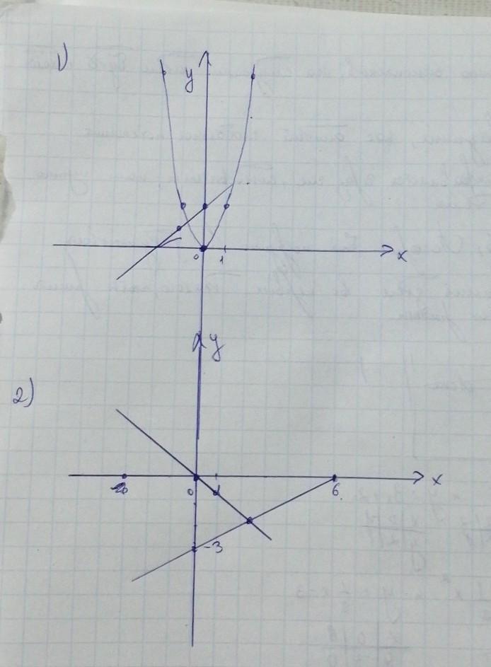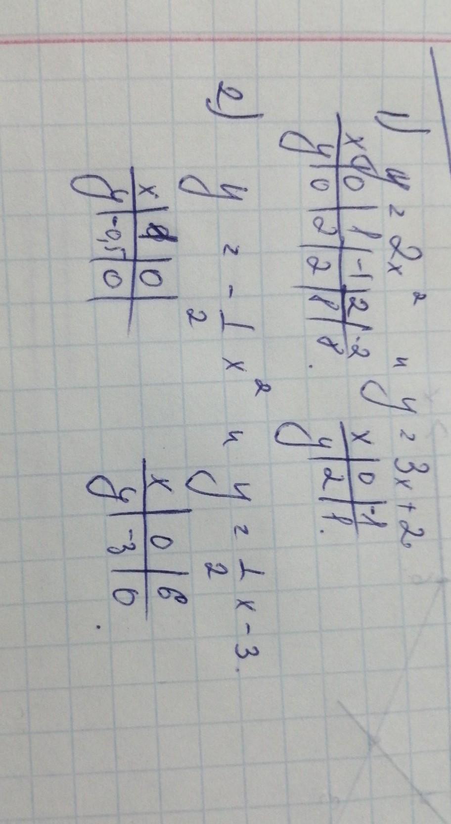 Найдите координаты точек пересечения графиков функций: 1)у=2х^2 и у=3х+2; 2) у=-1/2х^2 и у=1/2х -3,