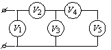 вольтметров следующие: V1 = 5 В, V2 = 4 В, V3 = 2 В, V4 = V5 = 1 В. Найдите неисправный