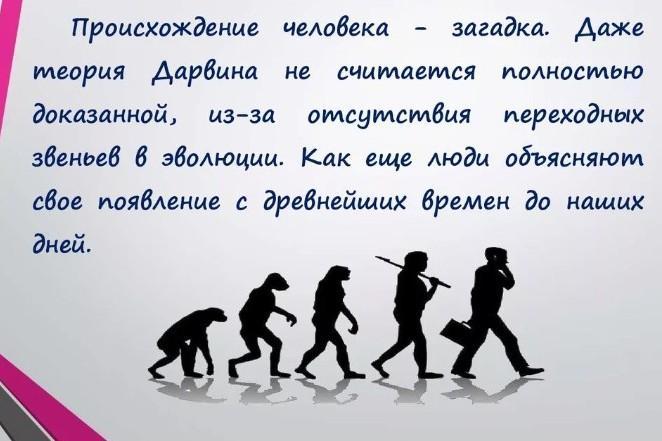 1. Теория эволюции (Дарвина) - человек является одним из потомков обезьян