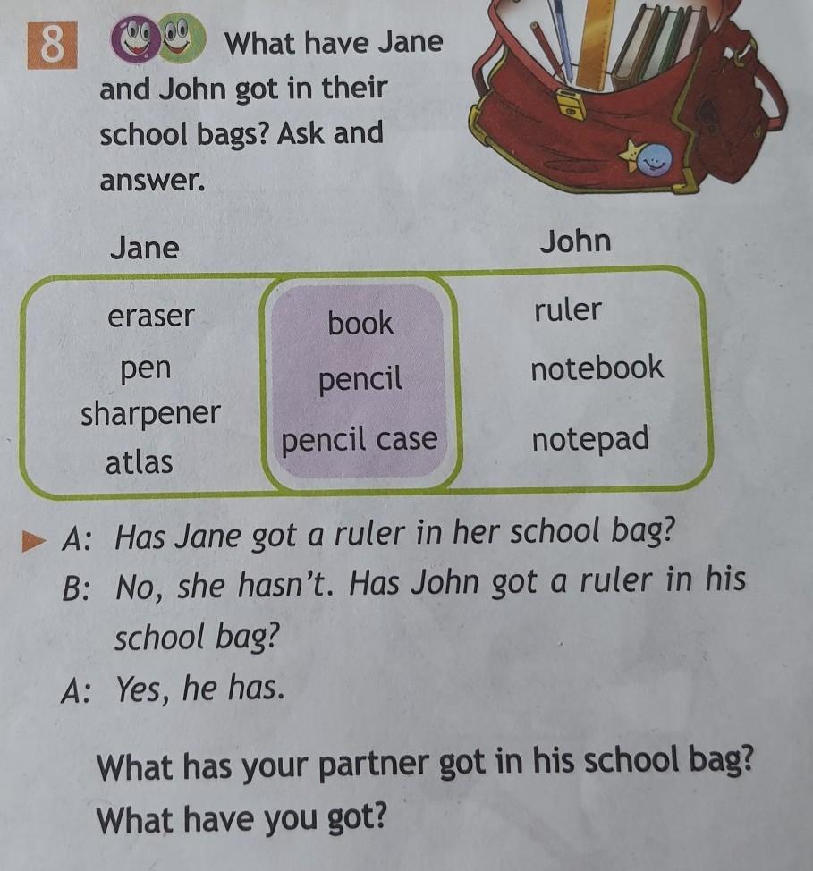 там написно что берет твой партнер и ты надо писать типа she/he hase вещ которая есть у него(-ё)