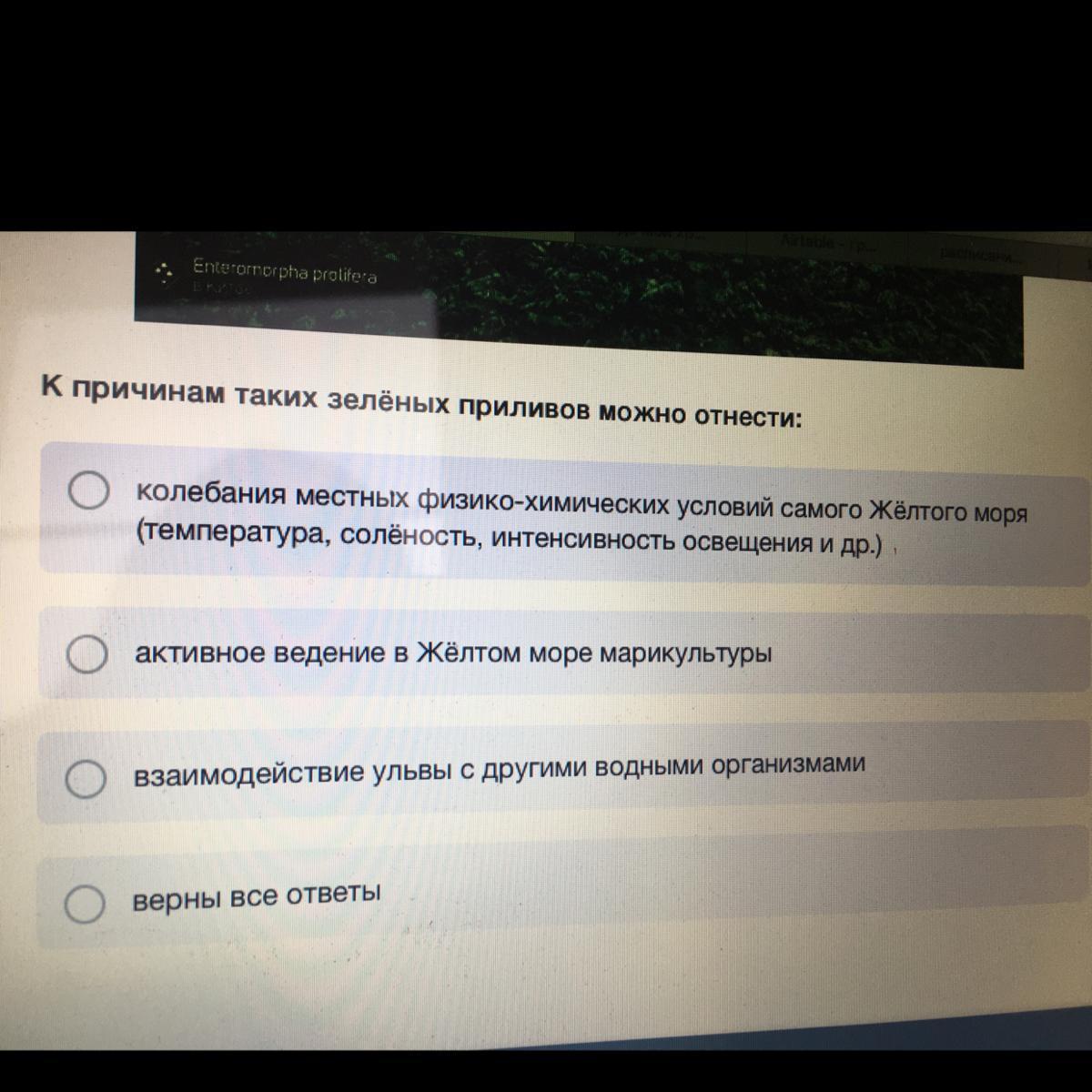 Съедобный вид морской водоросли Ульвы развиваясь в массе в последнее десятилетие вызывает так называемый зелёные приливы от которых особенно страдают жёлтое море