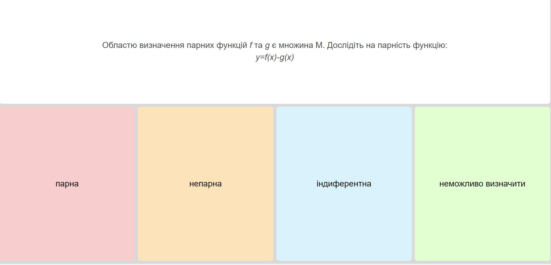 у = f (-x) - g (-x) = -f (x) + g (x) - непарна