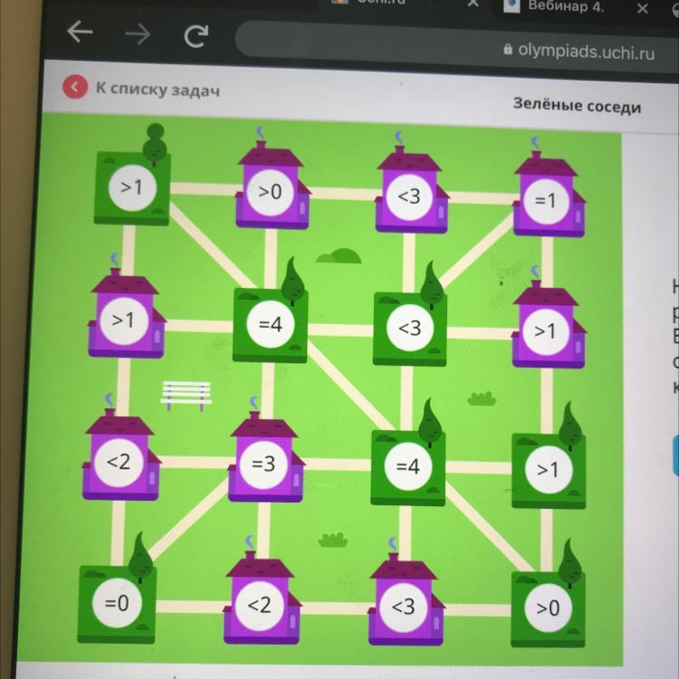 Нажимай на участки, чтобы разместить на каждом дом или парк. Выражения в кружках указывают, сколько дорожек от участка ведёт к паркам.