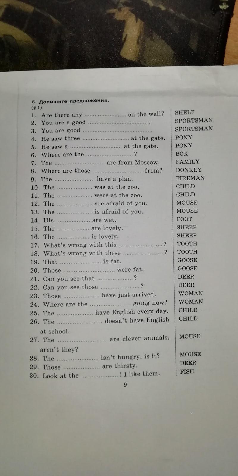 Я как понял там в пустые строчки надо записать слова справа только добавляя или не добавляяs