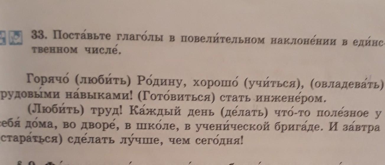 Люби́ труд! Ка́ждый день де́лай что-то поле́зное у себя́ дома́, во дворе́, в шко́ле, в учени́ческой бригаде. И за́втра стара́йся сде́лать лу́чше, чем сего́дня.
