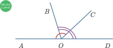 Сызбада AD түзуі берілген, ∠AOC = 115°, ∠BOD = 137°. AOB, BOC, COD бұрыштарының ішіндегі ең үлкенін тап.