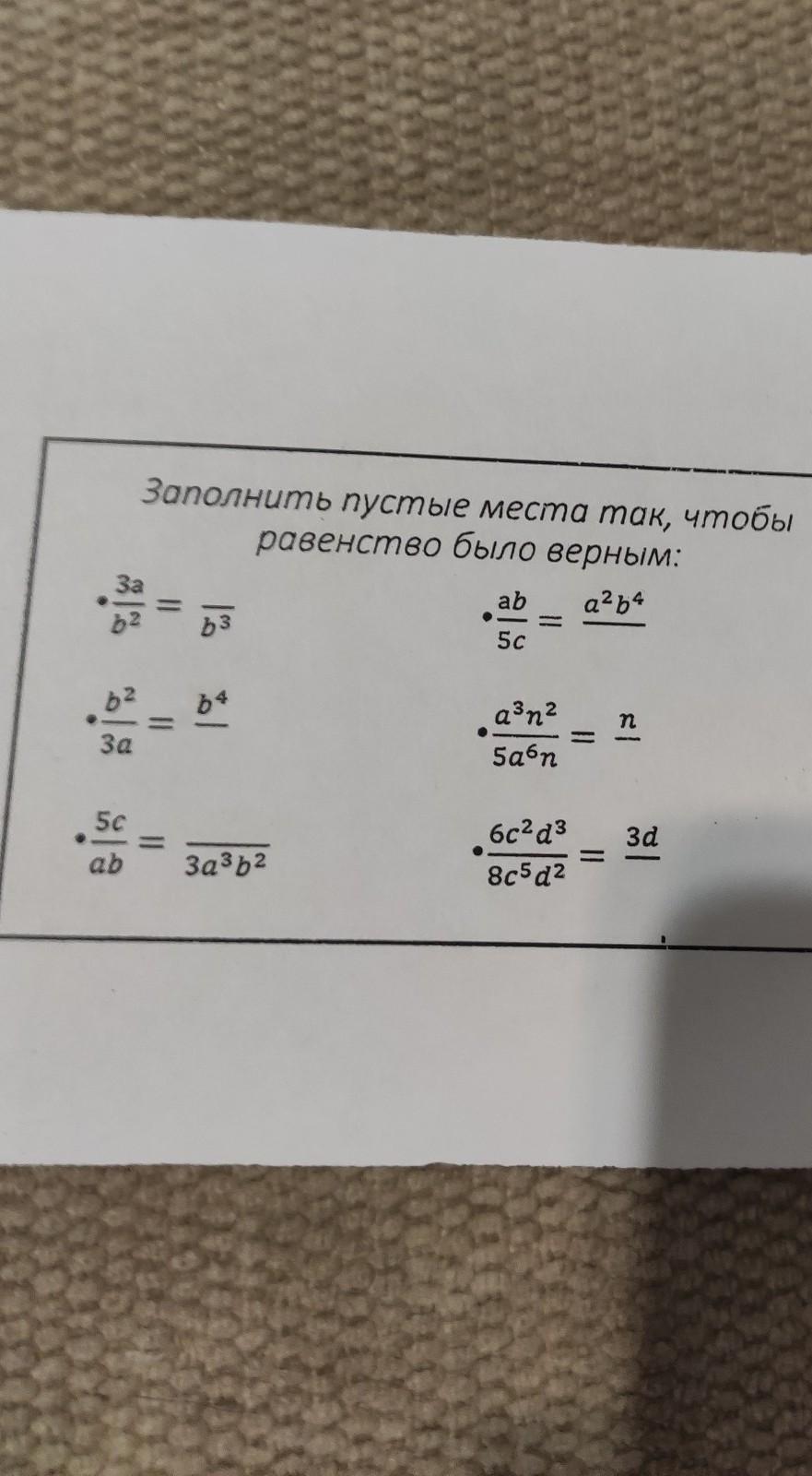 5) (a³n²)/(5a⁶n) = n/(5a³) - надо сократить