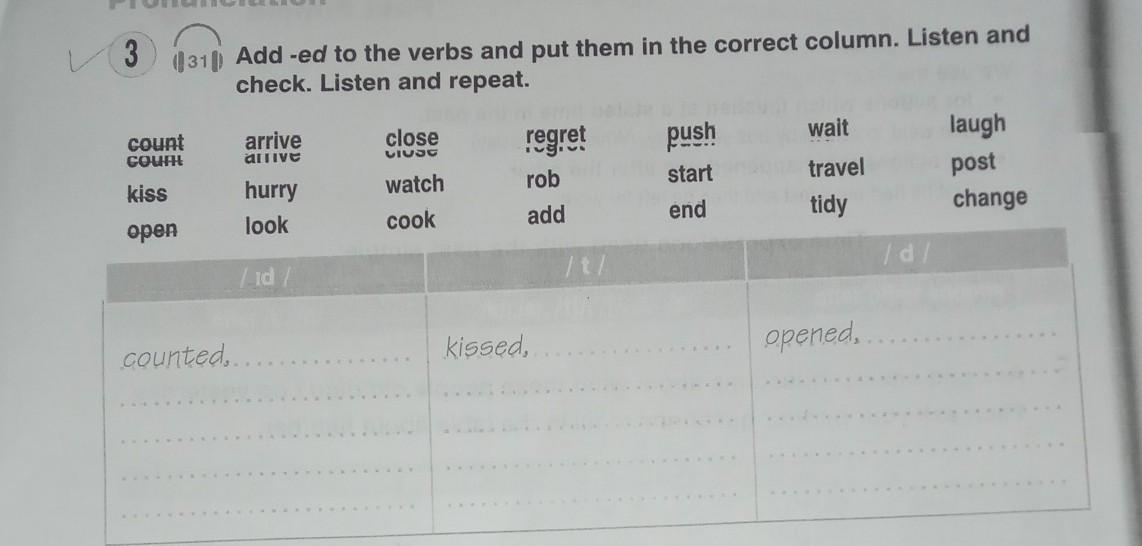 /d/- arrived, closed, pushed, hurried, opened, looked, cooked, changed