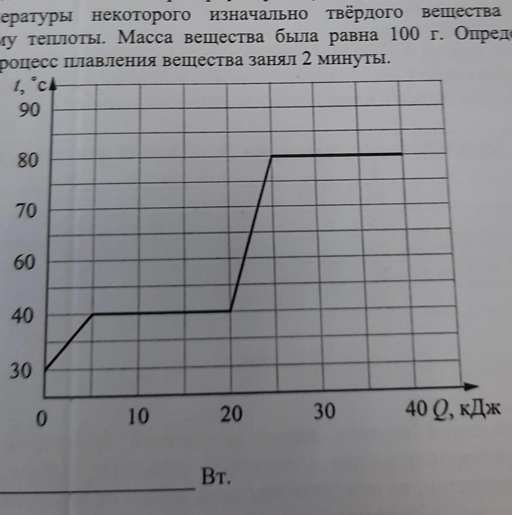 подведённой к нему теплоты. Масса вещества была равна 100 г. Определите мощность
