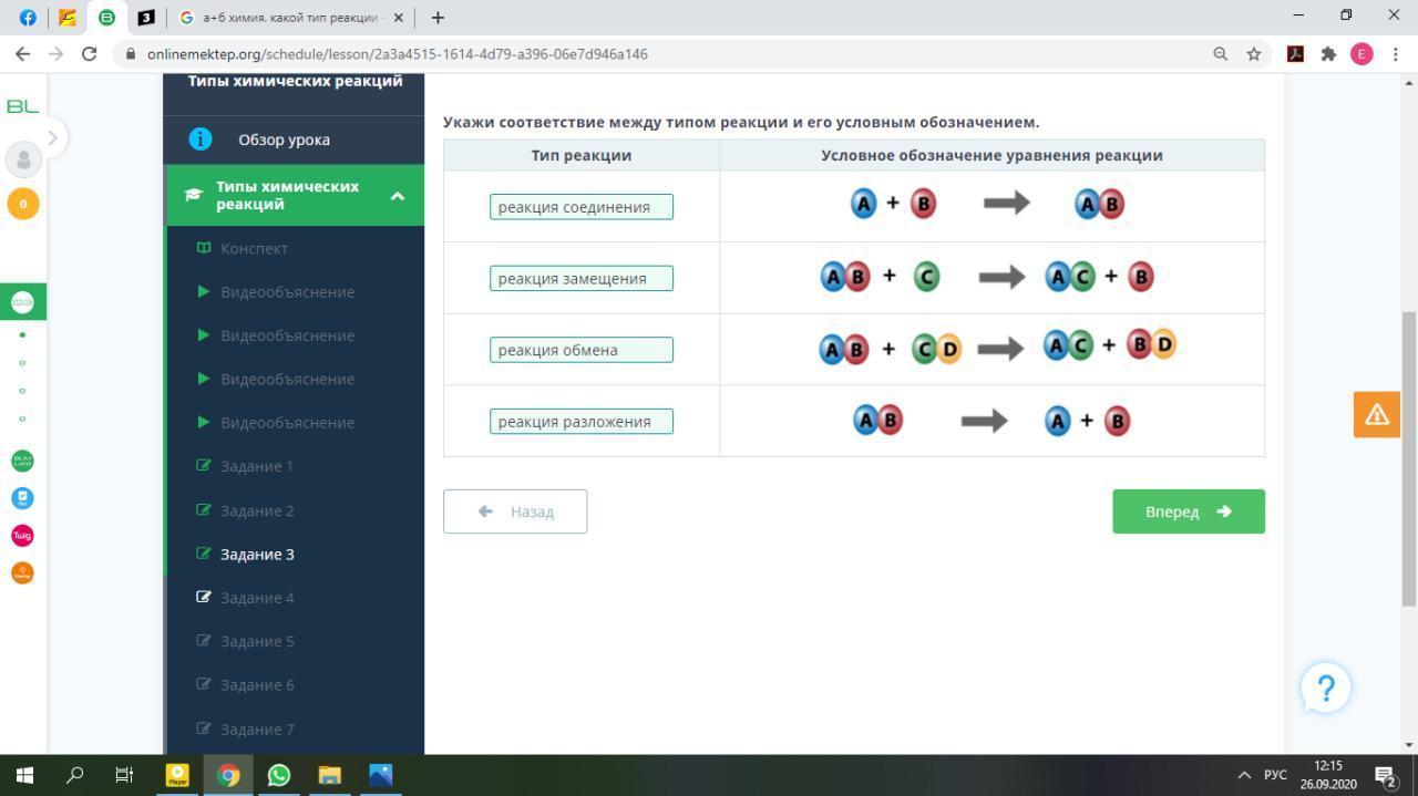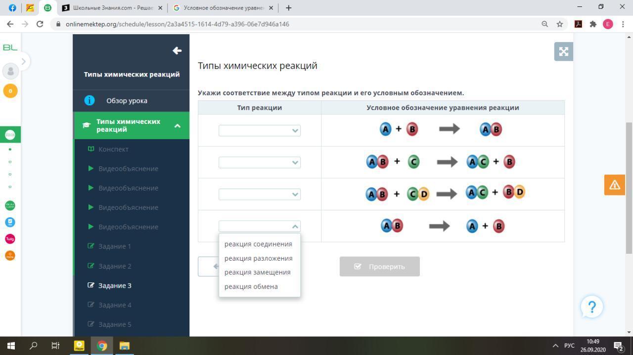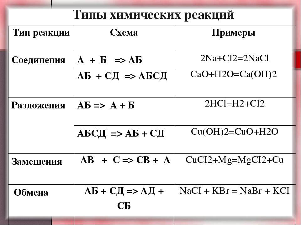 вощем ответы такие 1, соединение 2,замещение 3,реакция обмена 4, разложение