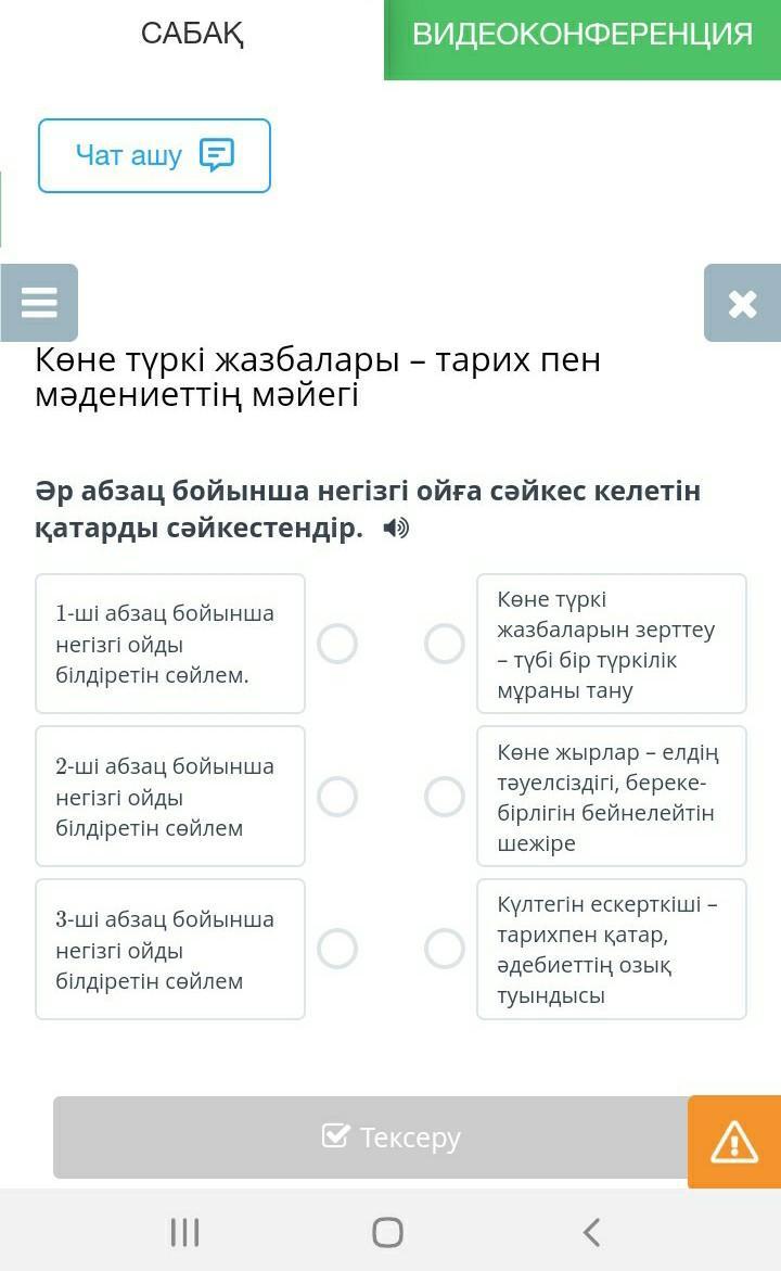 әр абзац бойынша негізгі ойға сәйкес келетін қатарды сәйкестендір