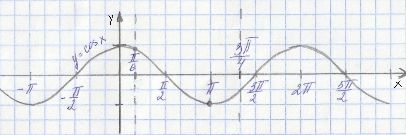 По графику функции видно, что наибольшее значение находится в точке п/6, а наименьшее в точке п
