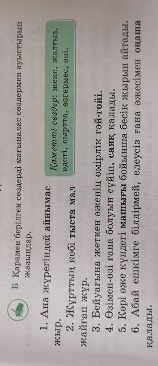 вқарамен берілген сөздерді мағыналас сөздермен ауыстырып