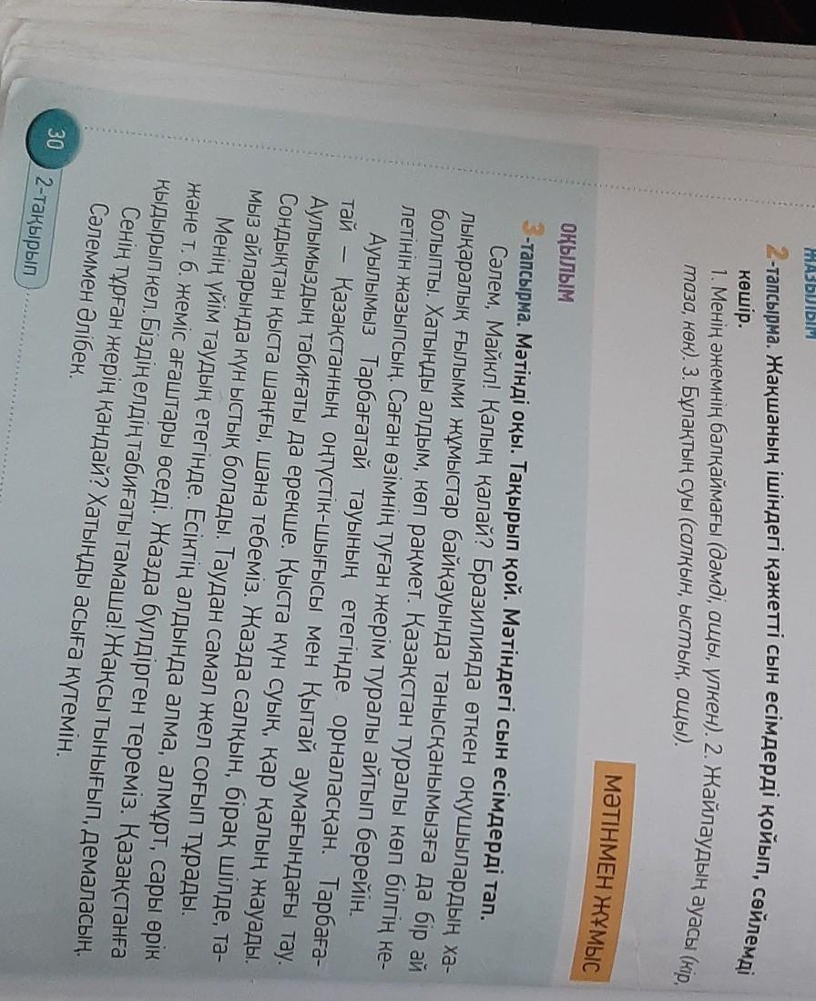 3-тапсырма, 30-бет Мәтінді оқы. Мәтіндегі сын есімдерді тап.