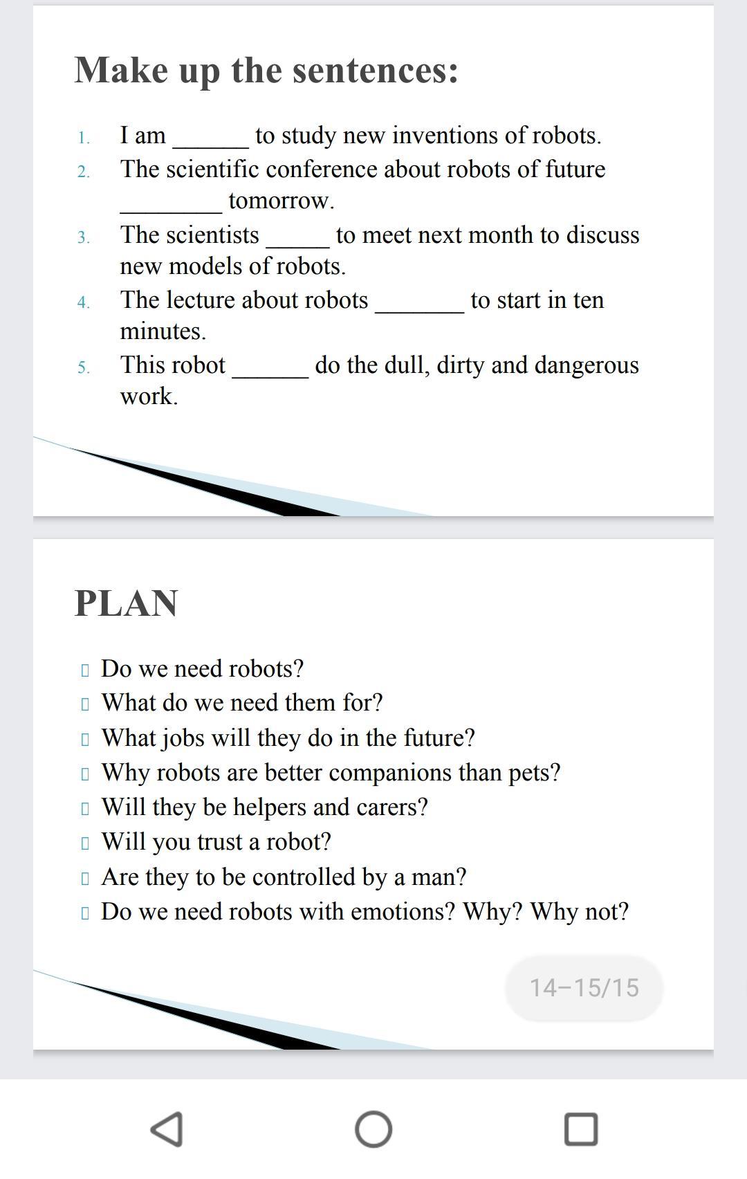 1.I think we need robots in the field of information familiarization of any information for clients.