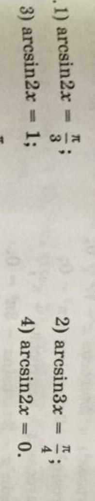 1) arcsin2x=π/3⇒2x=sin(π/3)⇒2x=√3/2⇒x=√3/4