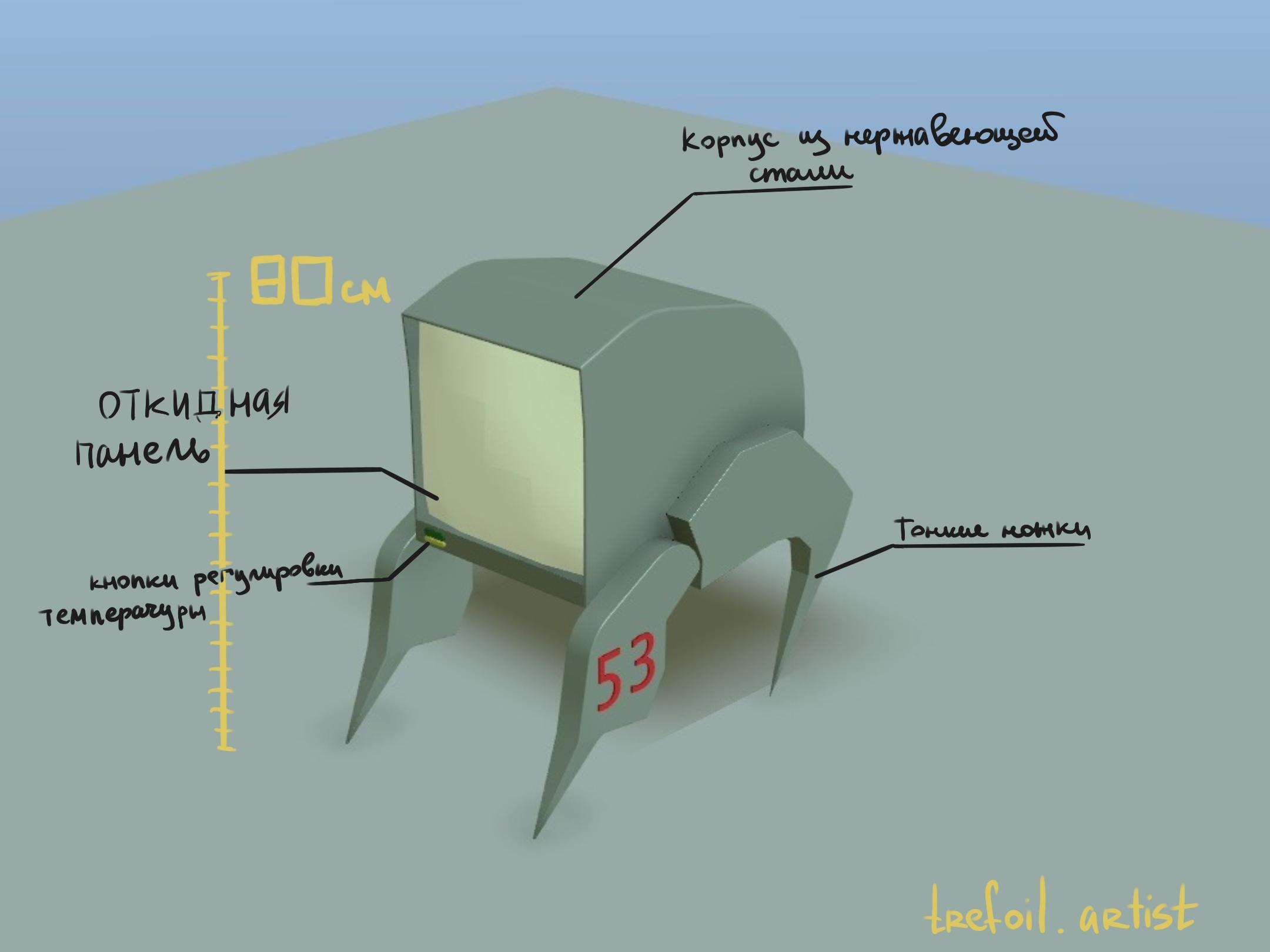 3. Терморегулировка отсеков камеры хранения робота; наличие особых отсеков для радиоактивных и хрупких предметов;