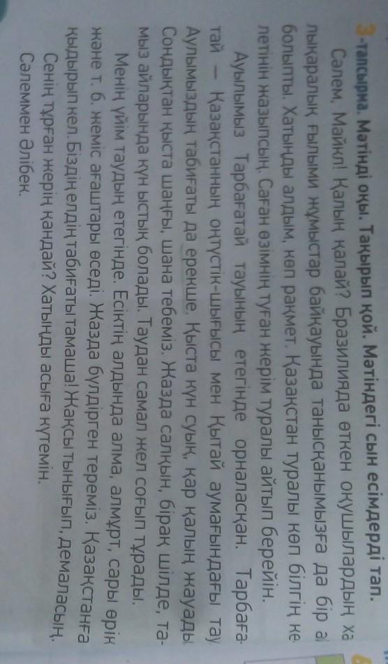 Мәтінді оқы. Тақырып қой. Мәтіндегі сын есімдерді тап.