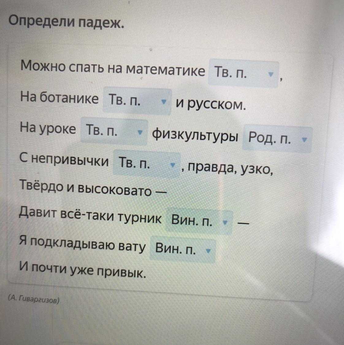 На уроке(П. п) физкультуры (Р.п)