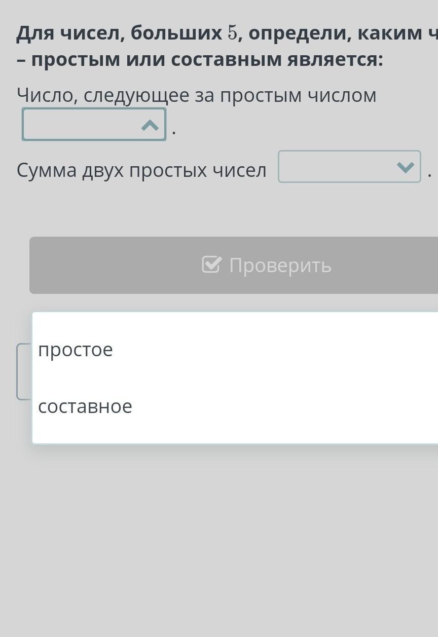 Для чисел, больших 5, определи, каким числом – простым или составным является: