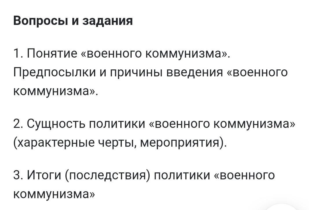 Военный коммунизм — название внутренней политики Советского государства, проводившейся в 1918 — 1921 гг. в условиях Гражданской войны.
