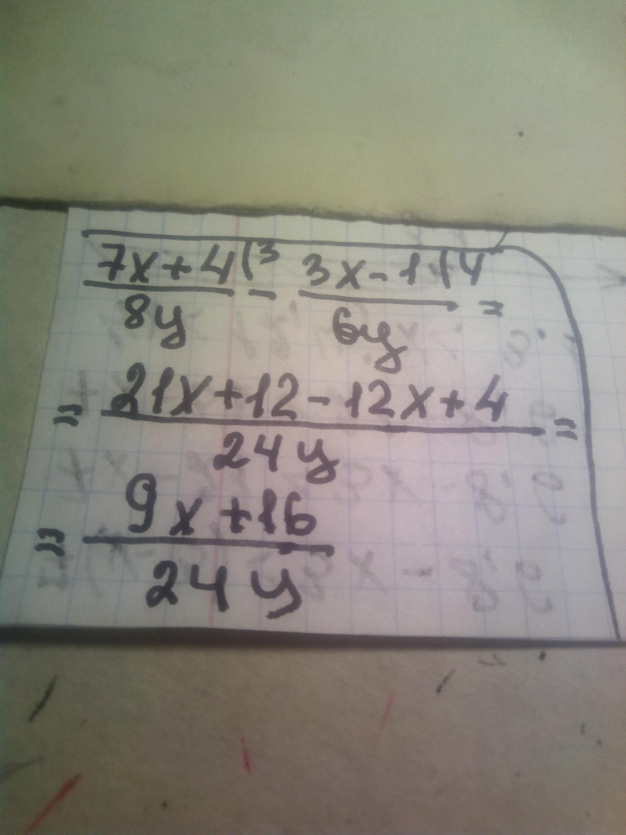 \frac{7x + 4}{8y } - \frac{3x - 1}{6y}