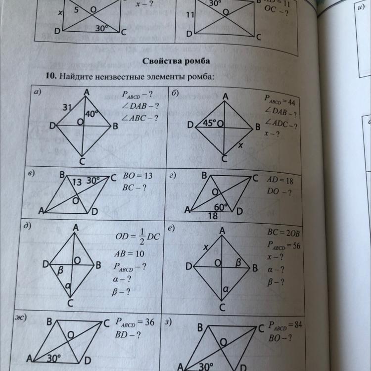 в ромбе диагонали пересекаются под углом в 90°