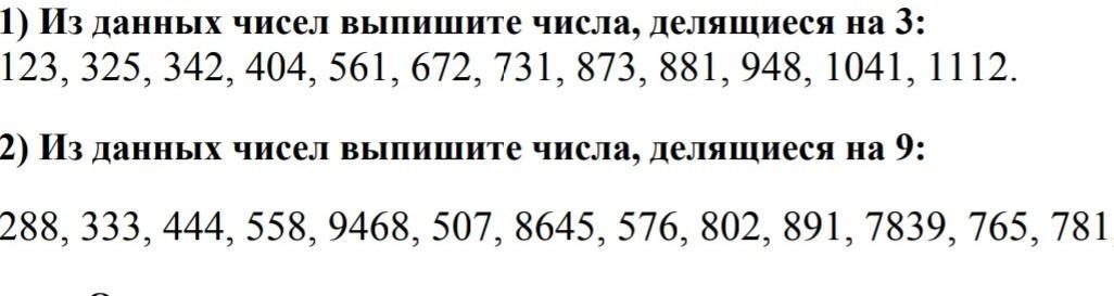 2) 288; 333; 558; 9468; 576; 891; 7839; 765;