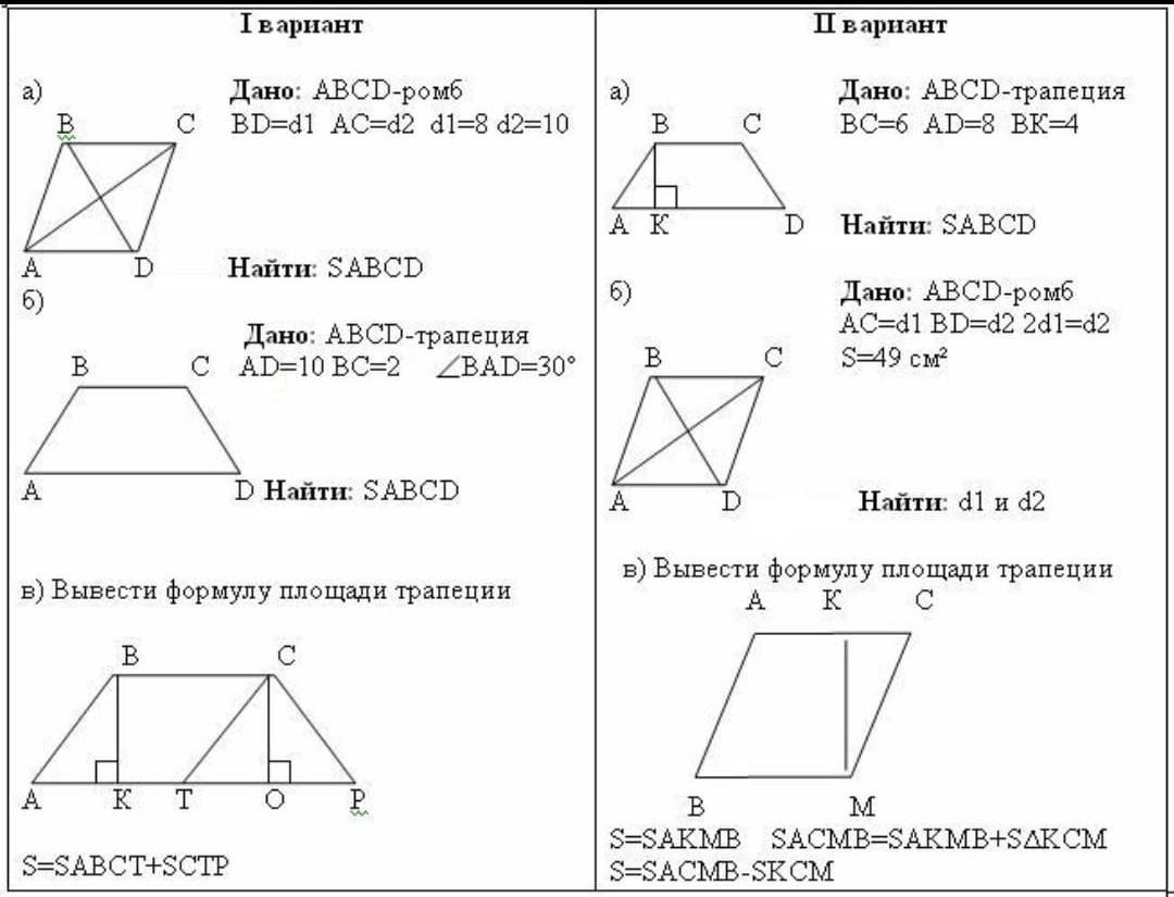 формула площади трапеции S=(a+b) /2 * h опирайся на это формулу (емли мне не изменяет память