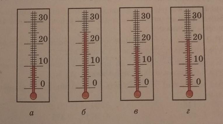 Яку температуру показуватиме термометер , зображений на рисунку 57, г, якщо його стовпчик: 1) піднімется на 3 поділки; 2) опустиця на 5 поділок