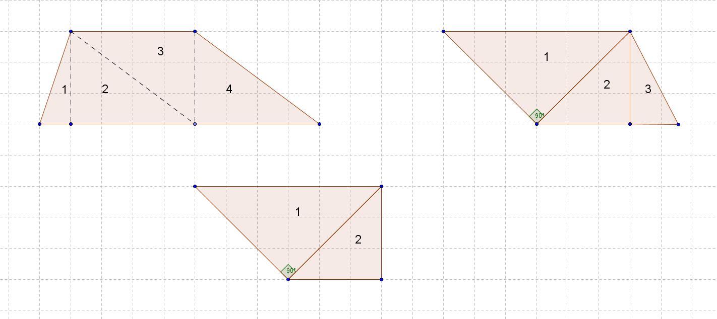 как составить трапецию из четырех прямоугольных треугольников, трех прямоугольных треугольников и двух прямоугольных треугольников??