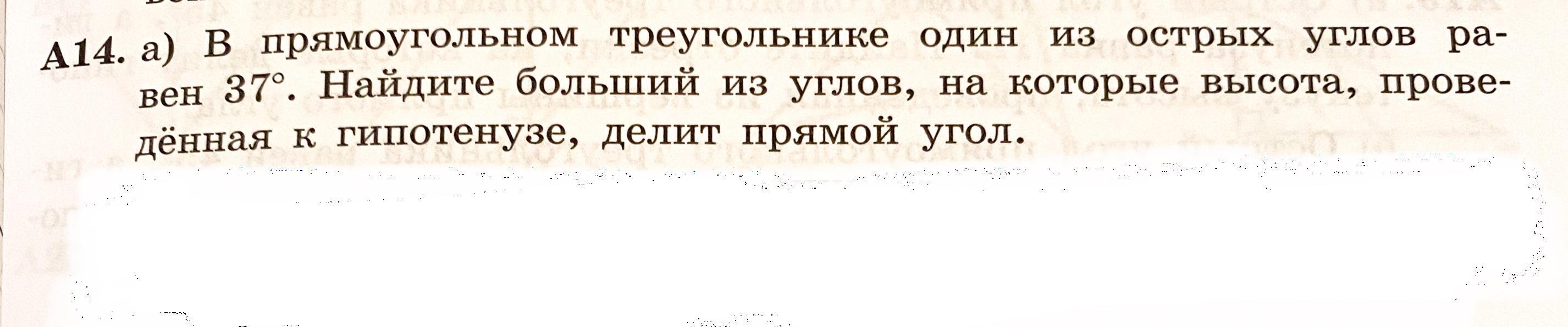 Тогда угол В разбирается высотой на два угла - 90-37=53 и 90-53=37. Этот угол 53