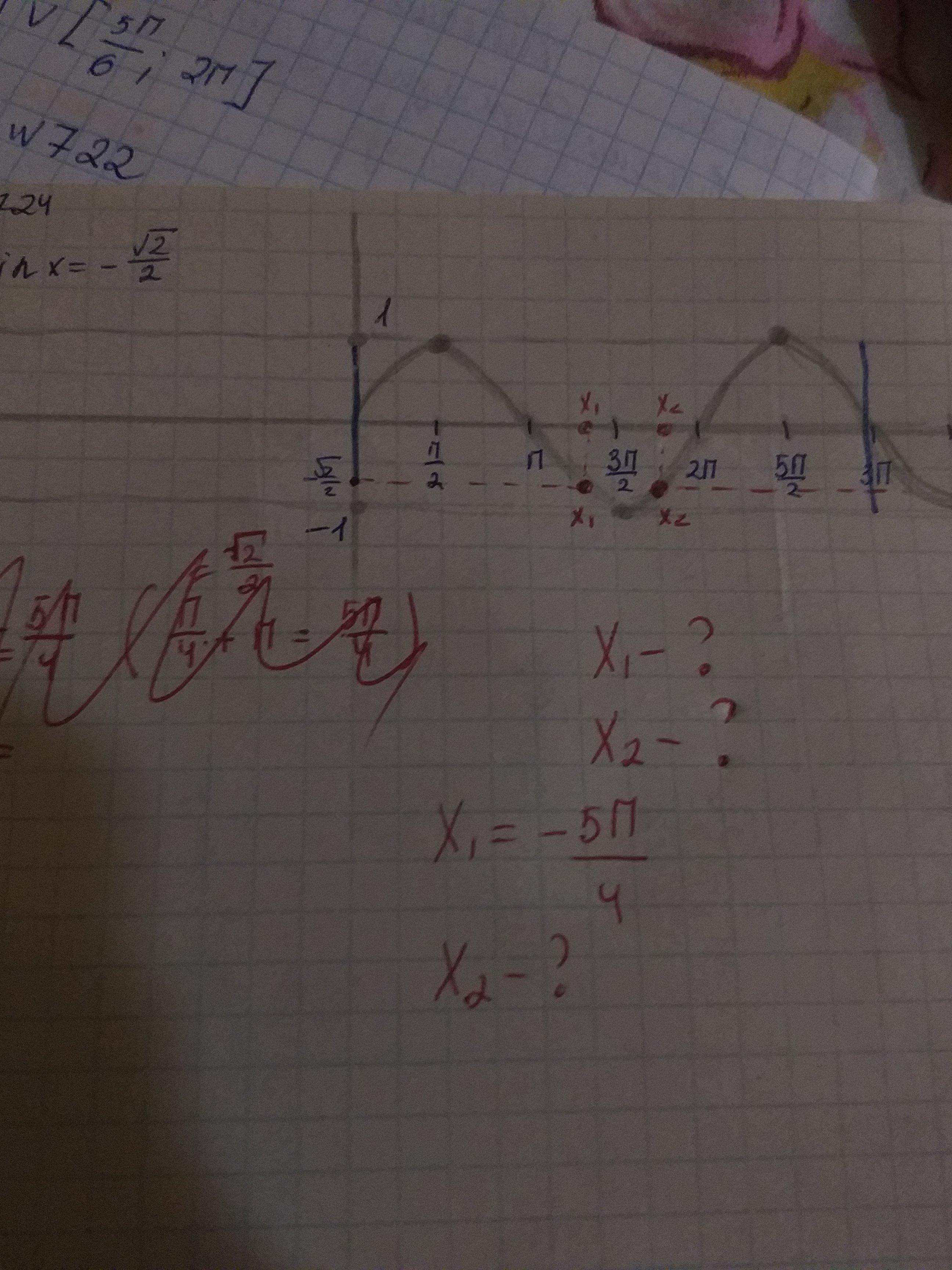 Я ПОНИМАЮ КАК НАЙТИ Х1 ЭТО ЗНАЧЕНИЕ sin -КОРЕНЬ ИЗ2/2 ,А КАК НАЙТИ Х2????????????