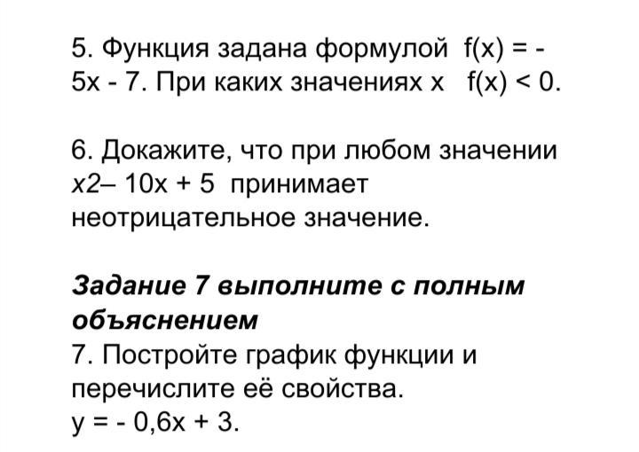 7)у=-0,6*x+3 прямая х=0 ,у=3 ; х=5 ,у=0.