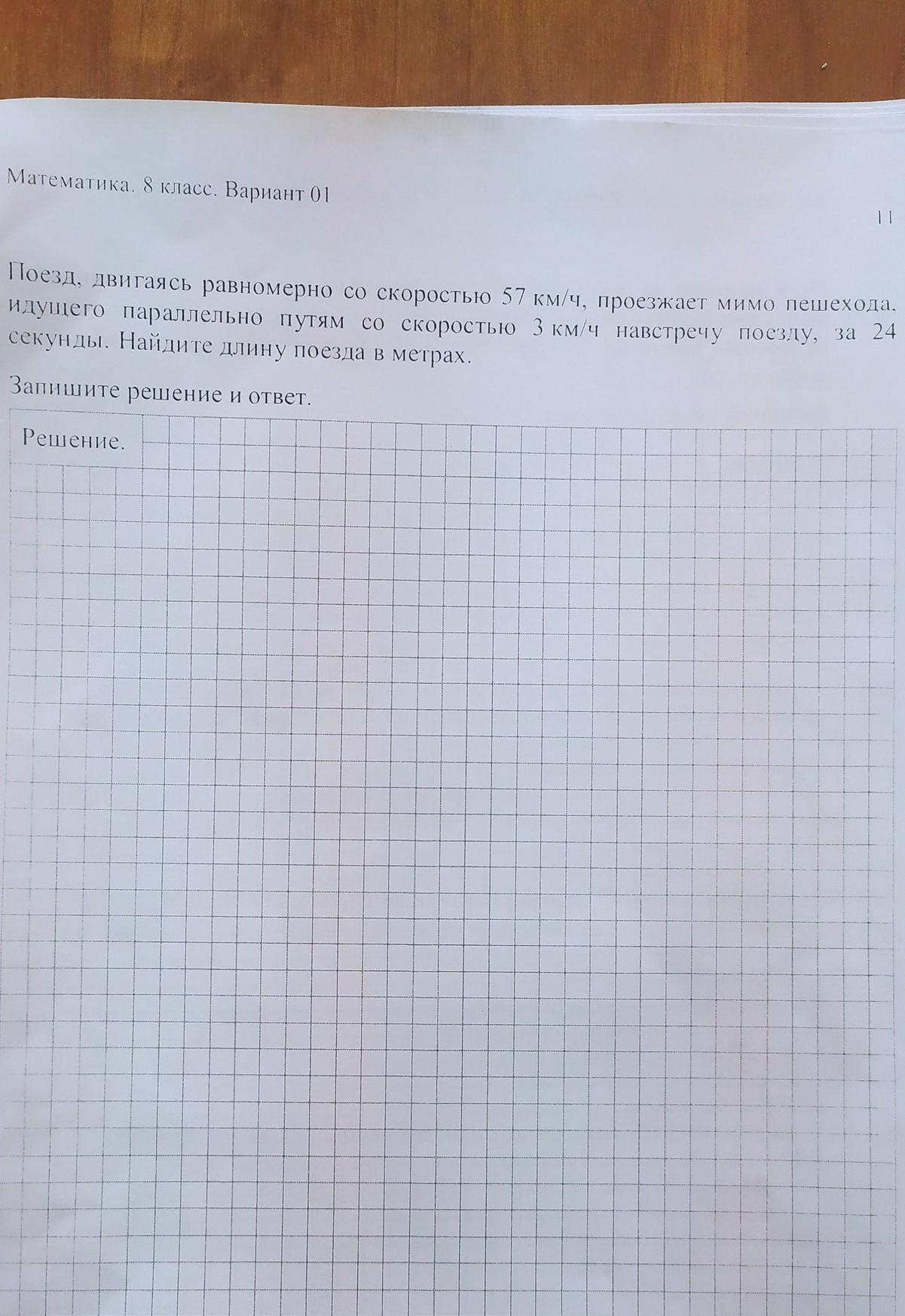 1) 57 + 3 = 60 (км/ч) - скорость удаления поезда от пешехода