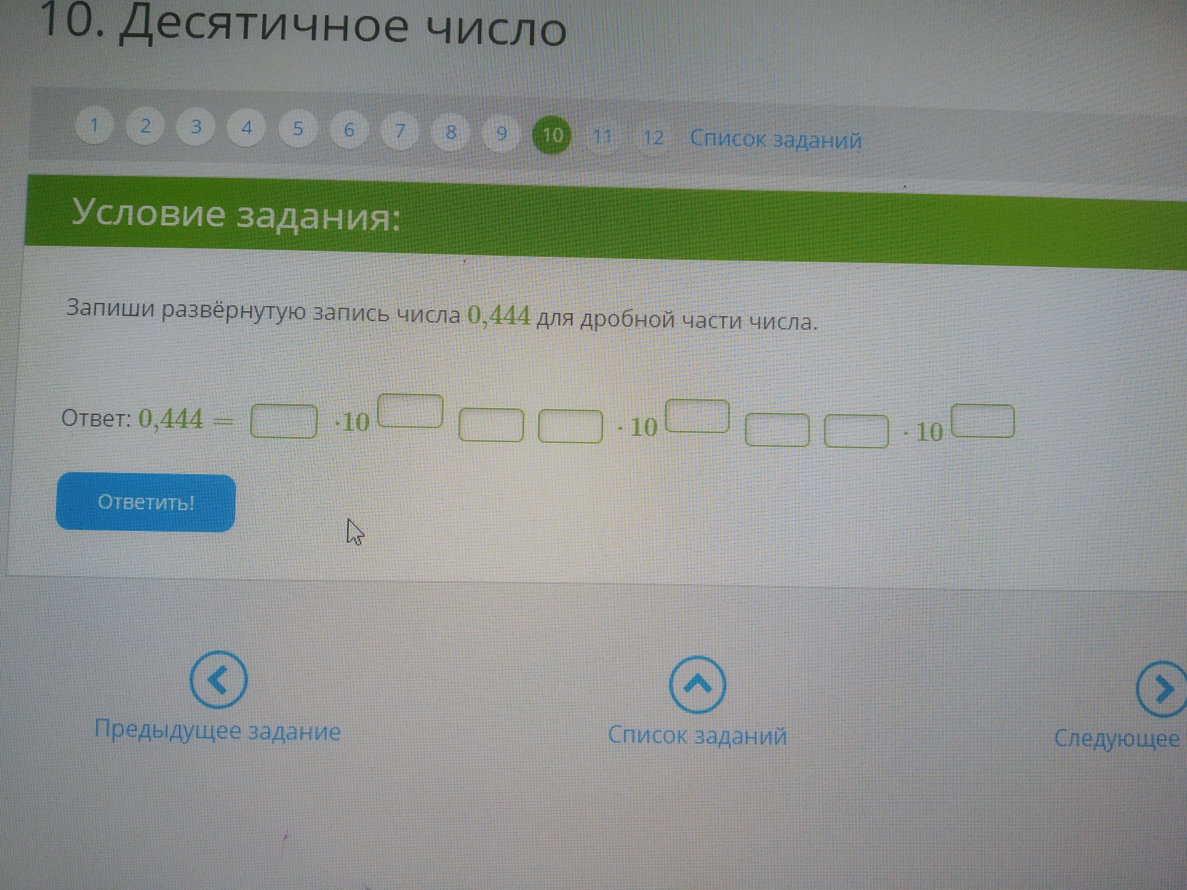 0,444₁₀ = 4×10⁻¹ + 4×10⁻² + 4×10⁻³