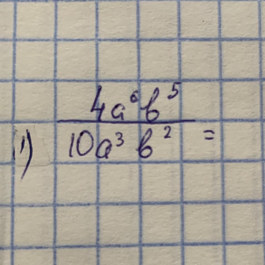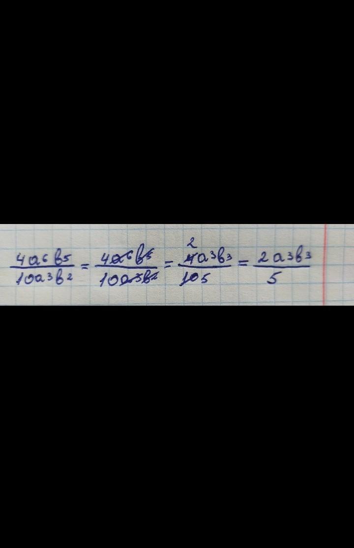 4a^6b^5/10a^3b^2=4a^(6-3)b^(5-2)/10=2a^3b^3/5
