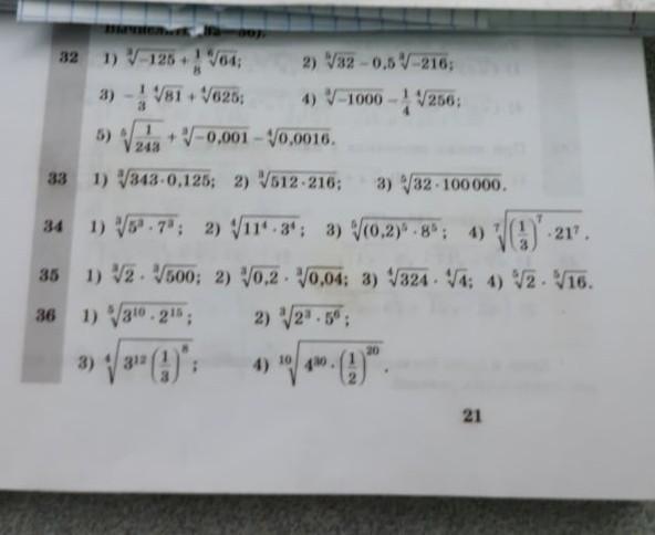 34. 1) \sqrt[3]{5^{3}*7^{3}}=\sqrt[3]{(5*7)^{3}}=5*7=35;