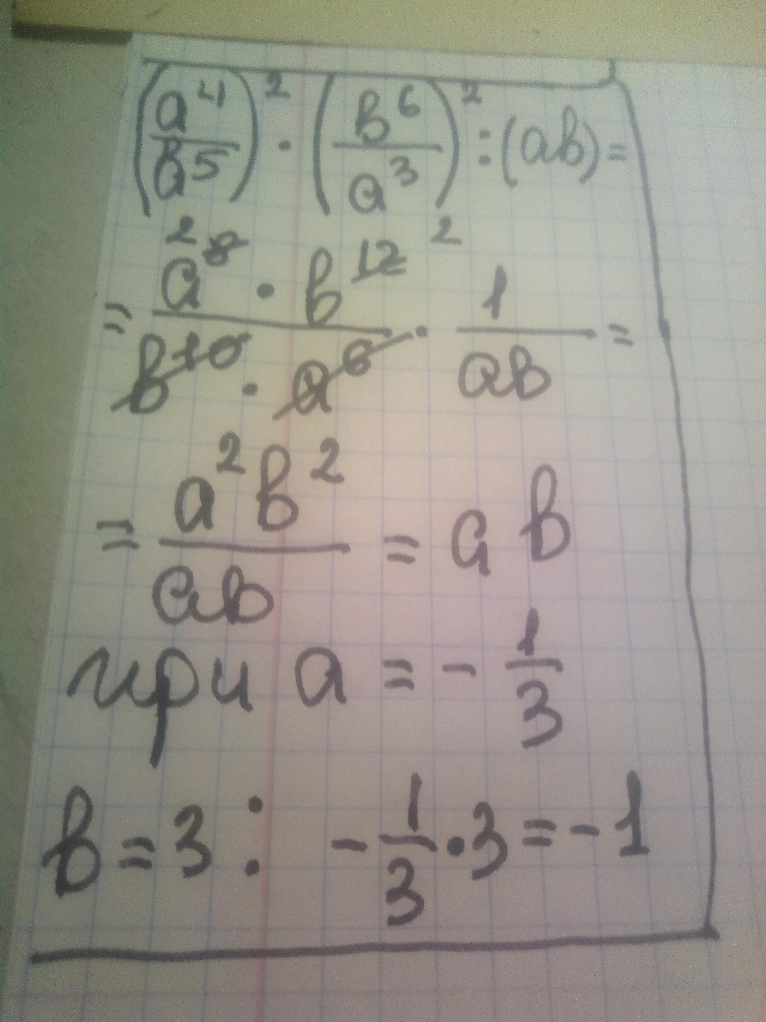 при a=-1/3, b=-3, ab=-1/3·(-3)=1.