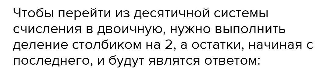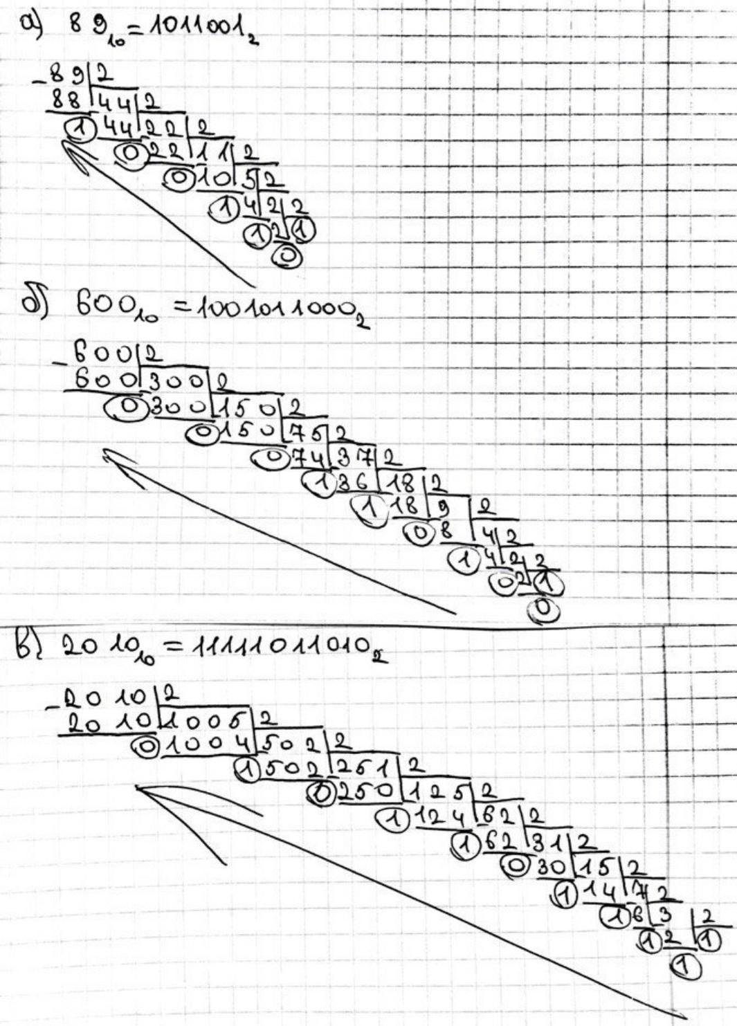 Переведите целые числа из десятичной системы счисления в двоичную: