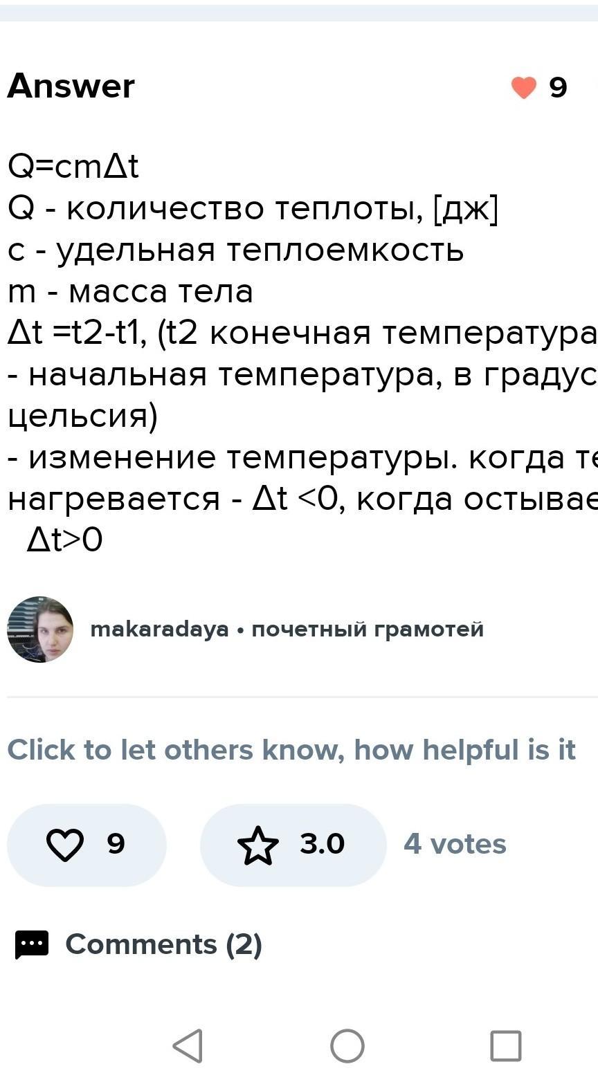 По какой формуле рассчитывается количество тепла, которое необходимо передать телу для его нагрева и которое оно передает окружающим телам при охлаждении?