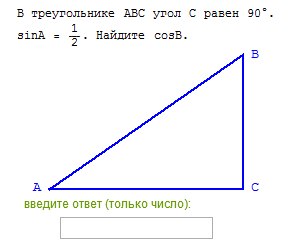 В треугольнике ABC угол C равен 90 градусов. sinA=1/2. Найдите cosB.