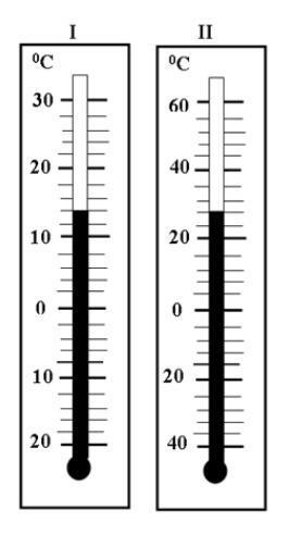 На сколько больше градусов изображено на II-ом термометре, чем I-ом?