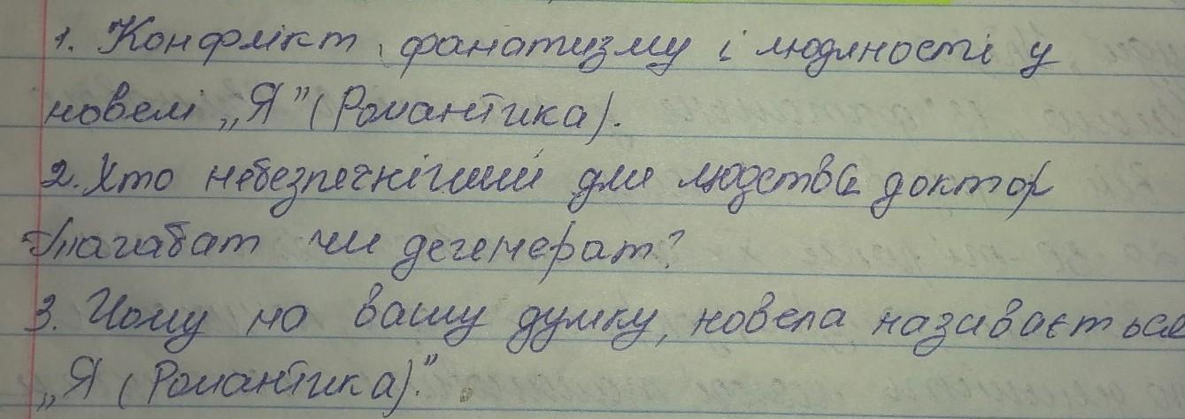 На жаль, фанатизм отримав верх над людяністю, і герой новели застрелив рідну матір: «Тоді я у млості, охоплений пожаром якоїсь неможливої радості, закинув руку на шию своєї матері й притиснув її голову до своїх грудей. Потім підвів маузера й нажав на скроню». Він зробив це в ім’я «дороги до загірних озер невідомої прекрасної комуни», в ім’я революції. І це найстрашніше.
