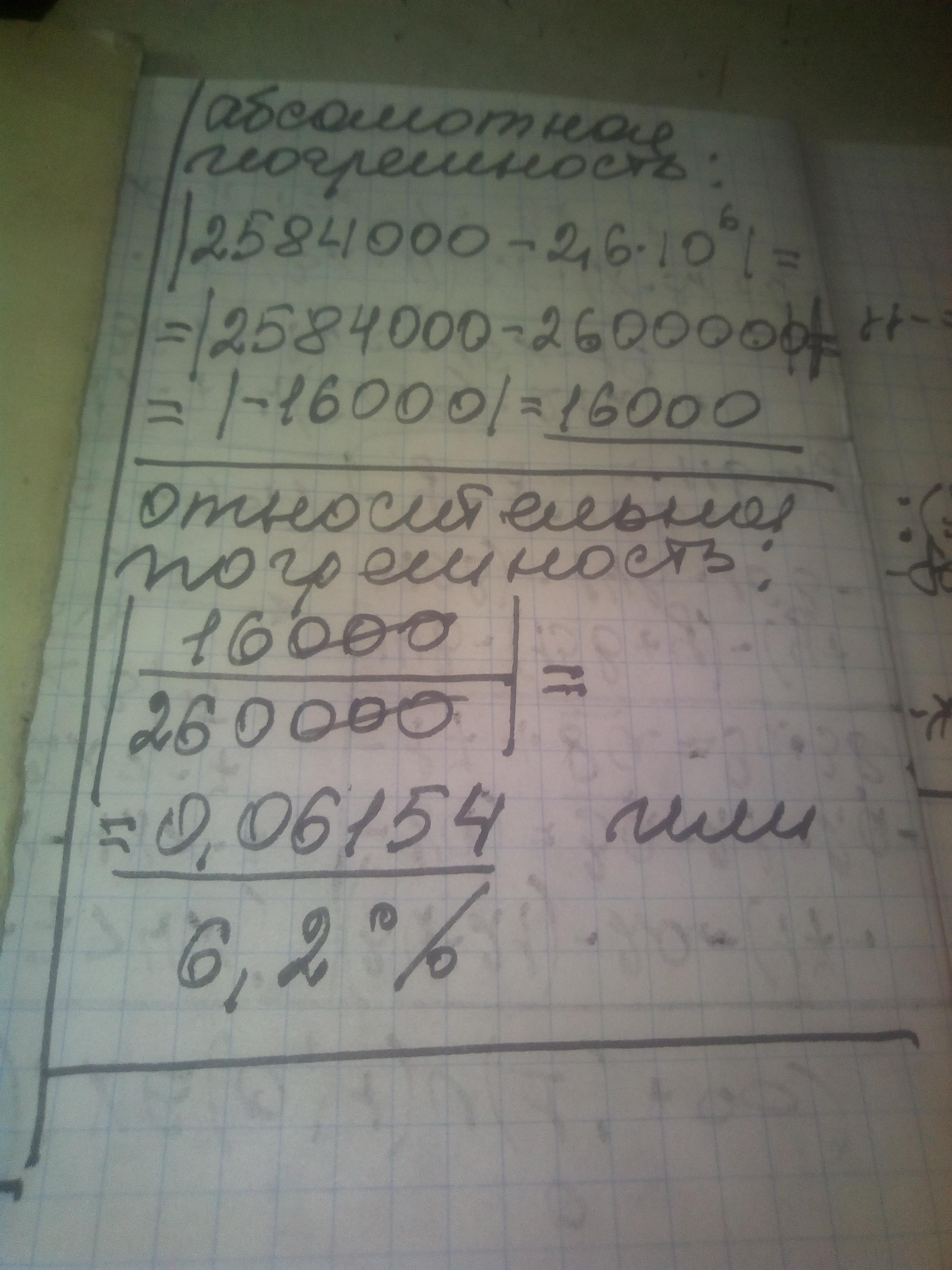 Пусть точное значение величины 2 584 000 м, приближенное значение 2,6·106м.