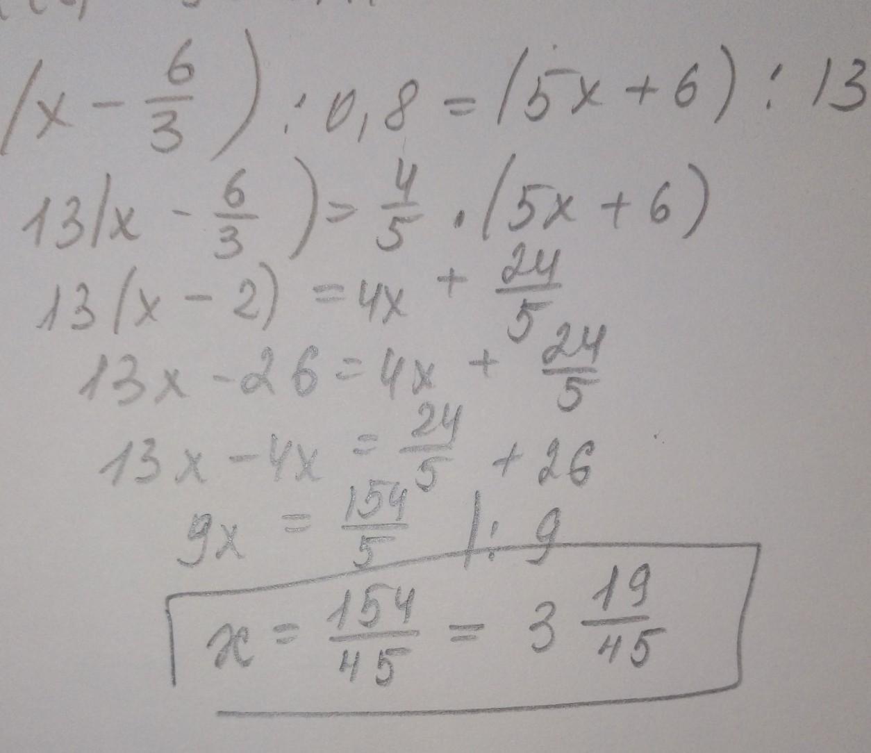 (х-6/3) : 0,8 = (5х + 6) : 13
