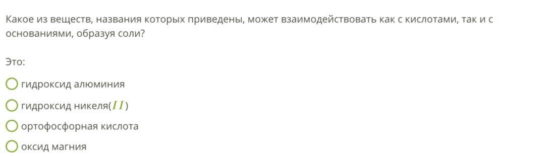 С кислотами и основаниями взаимодействует Al(OH)3 (гидроксид алюминия), т. к. является амфотерным. )