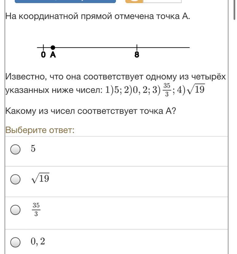 Точка находится в самом начале, следовательно это не 5, не √19 (≈4,3589), не