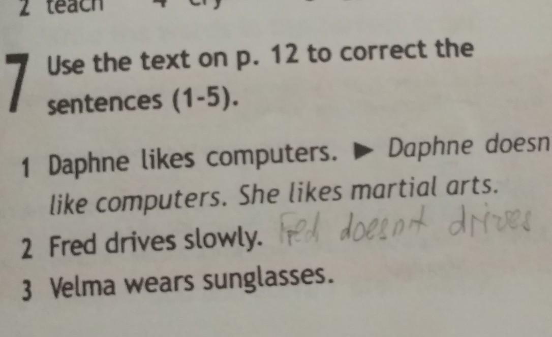 3. Велма носит солнце защитные очки. Велма не любит носить солнце защитные очки. Она любит просто очки.