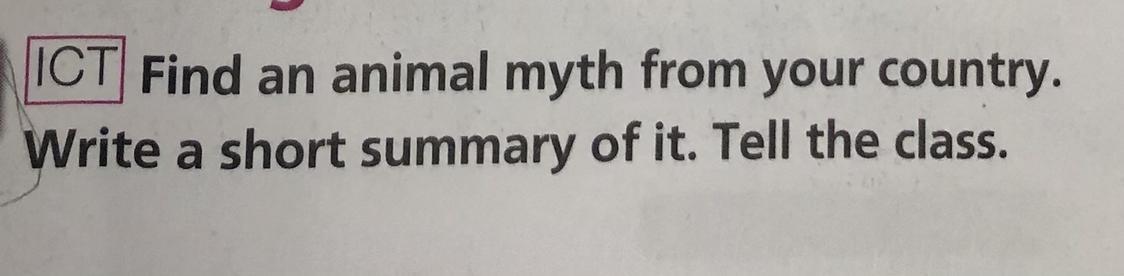 Найдите миф о животных из вашей страны. Напишите его краткое изложение. Расскажи классу.